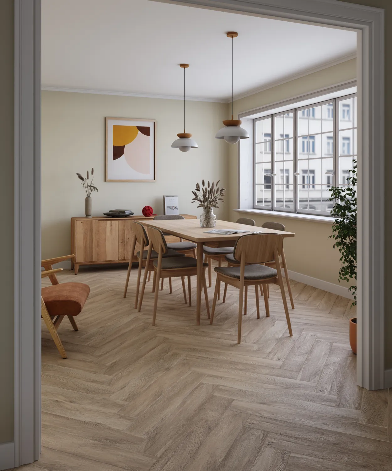 Многослойное покрытие включает UV-слой, предотвращающий выгорание и потерю цвета, а также полиуретановый слой с технологией Antiscratch, который надежно защищает пол от мелких царапин и потертостей. Встроенная подложка IXPE толщиной 1,5 мм обеспечивает дополнительный комфорт при ходьбе, улучшает шумоизоляцию и упрощает монтаж.