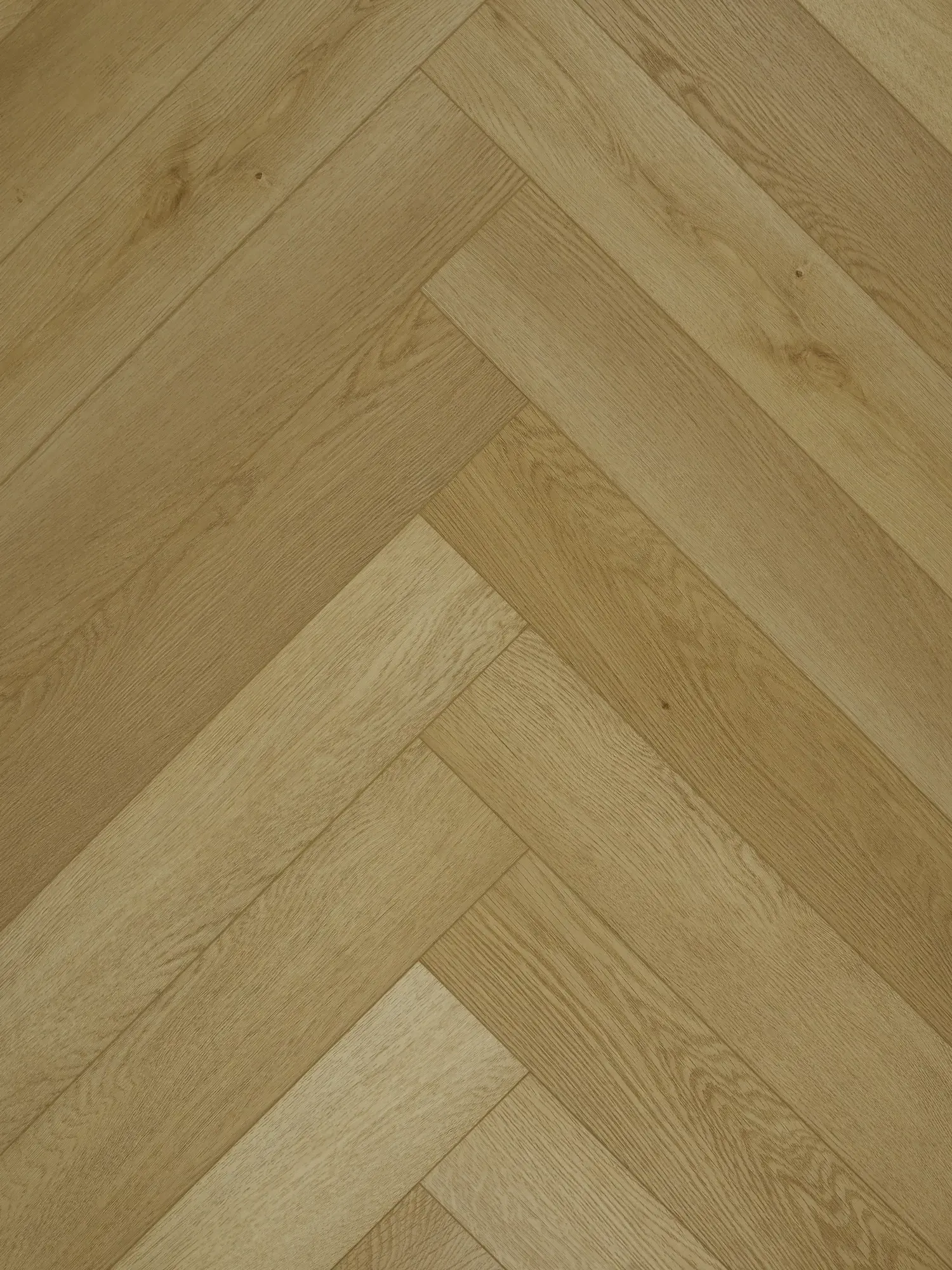 Синхронный рельеф совпадает с рисунком декора — поверхность неотличима от натурального паркета