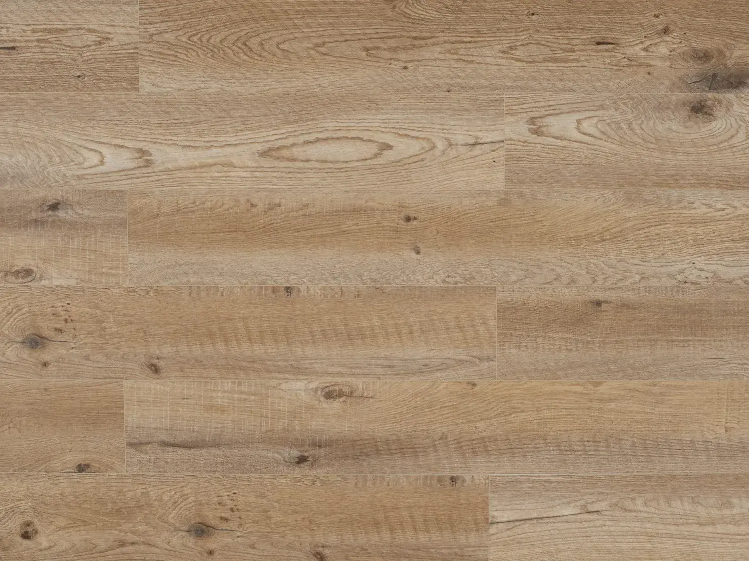 Синхронный рельеф совпадает с рисунком декора — поверхность неотличима от натурального паркета