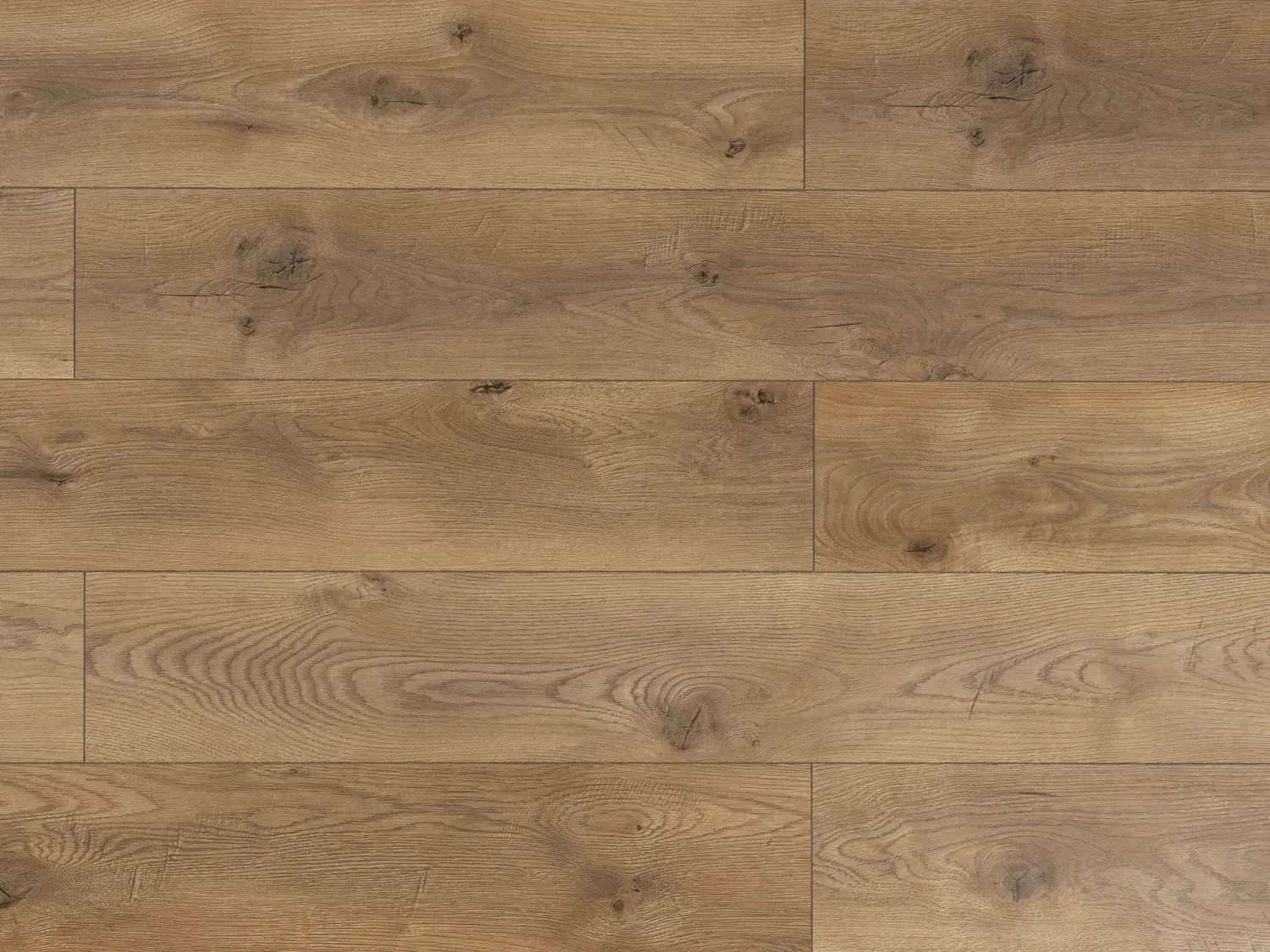 Синхронный рельеф совпадает с рисунком декора — поверхность неотличима от натурального паркета
